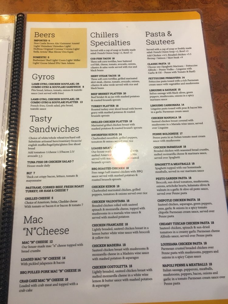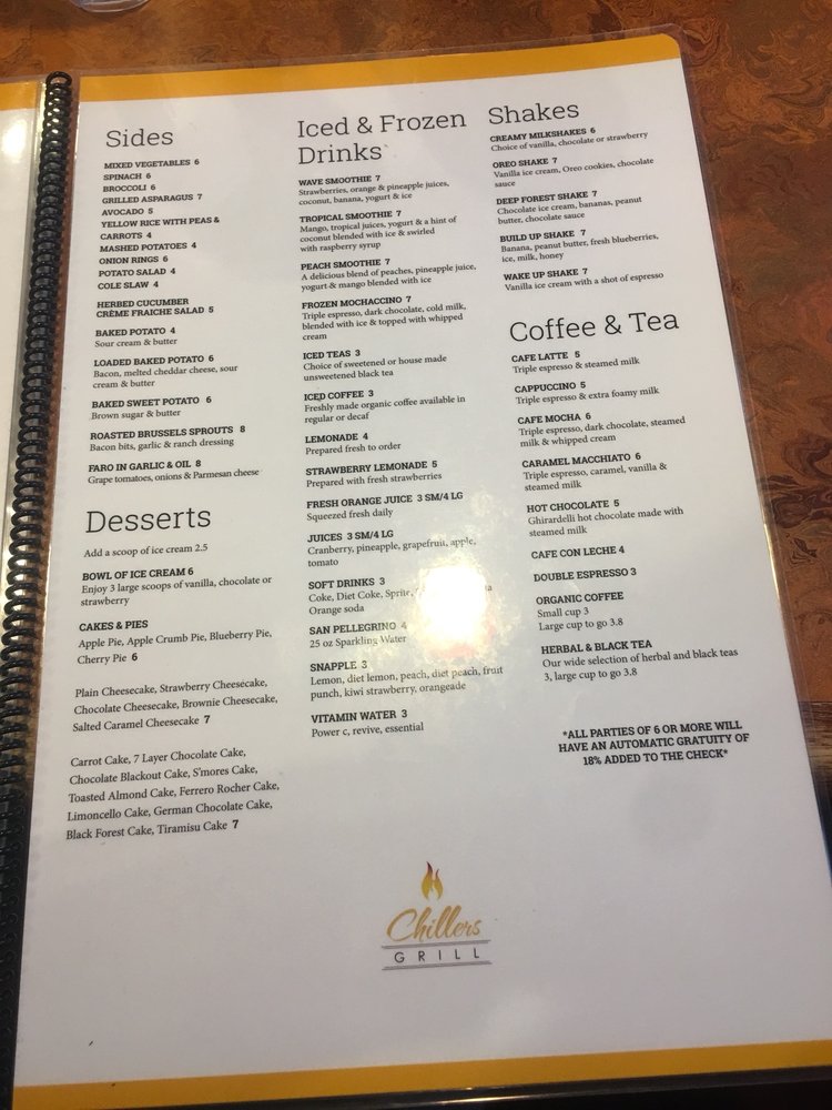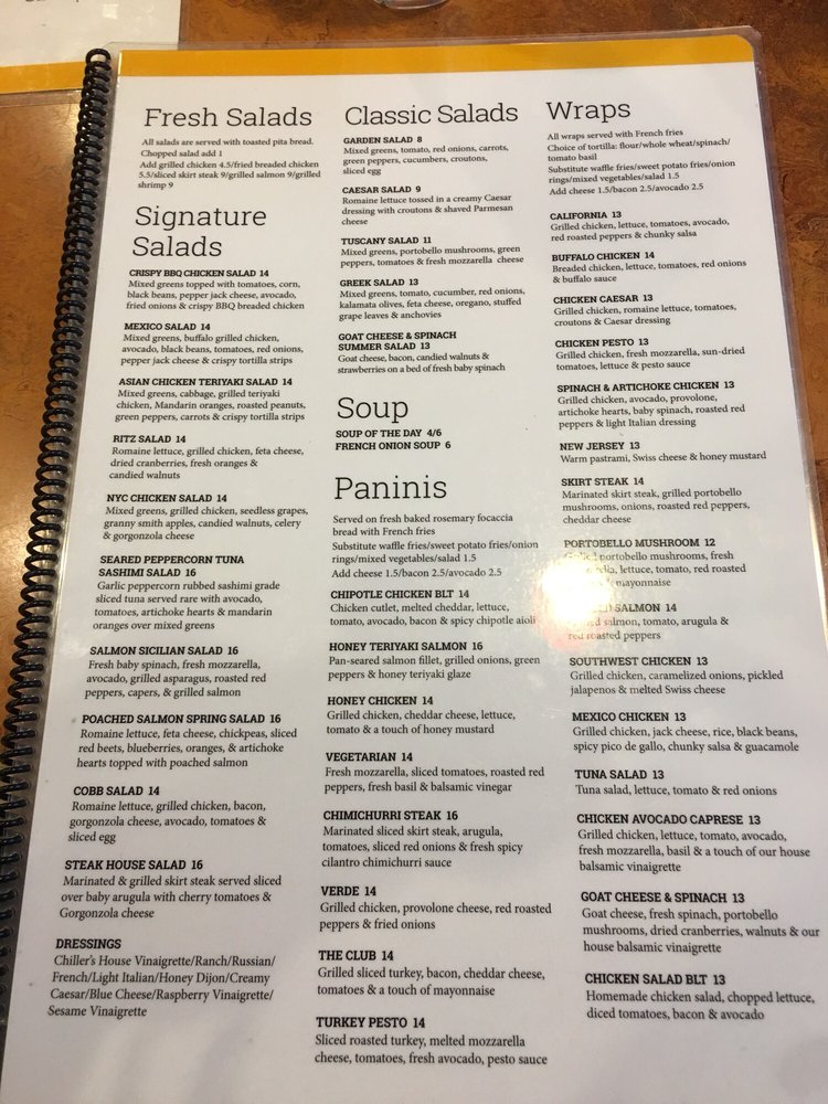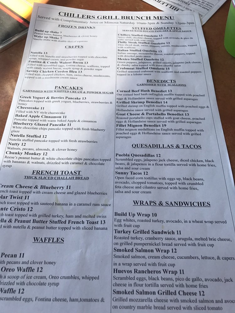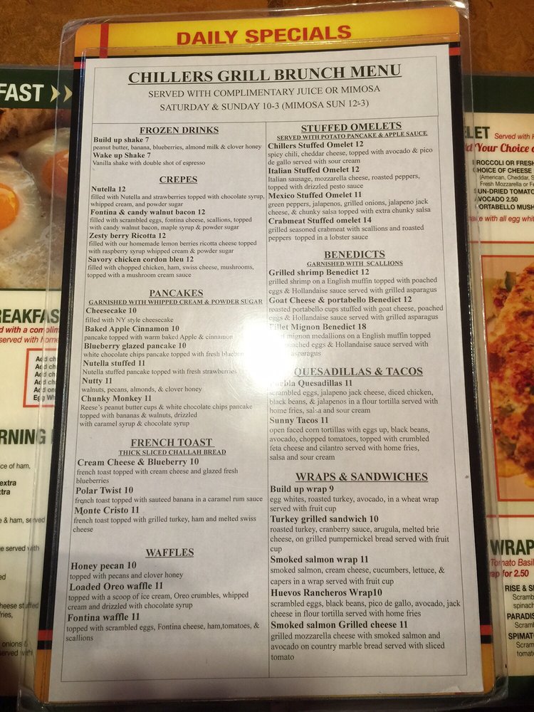 Introducing the menu at Chillers Grill, a casual American restaurant in Fort Lee, NJ. Chillers Grill offers a wide range of options for breakfast, brunch, lunch, dinner, and late-night cravings. From fresh juices and smoothies to hot and cold beverages, there's something for everyone. Don't miss out on their lunch specials like the Meatloaf Marsala or the That Good Salad packed with salmon, quinoa, and other delicious ingredients. With a full bar, happy hour specials, and outdoor seating, Chillers Grill is the perfect spot for gatherings with friends and family. The diverse menu and welcoming atmosphere make Chillers Grill a must-visit for those who appreciate good food and a great dining experience.